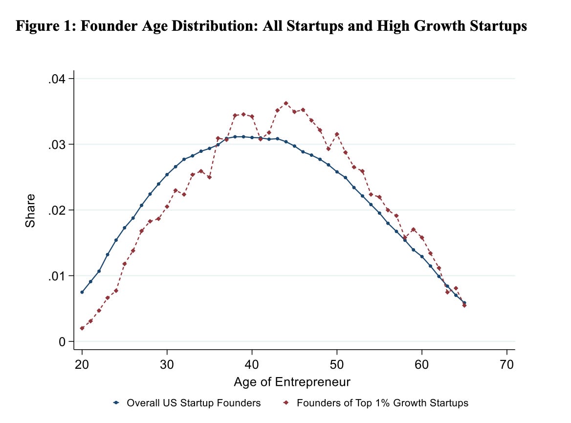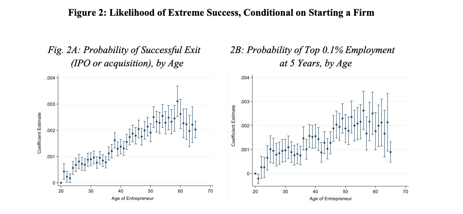 “Among those who have started a firm, older entrepreneurs have a substantially higher success rate.”