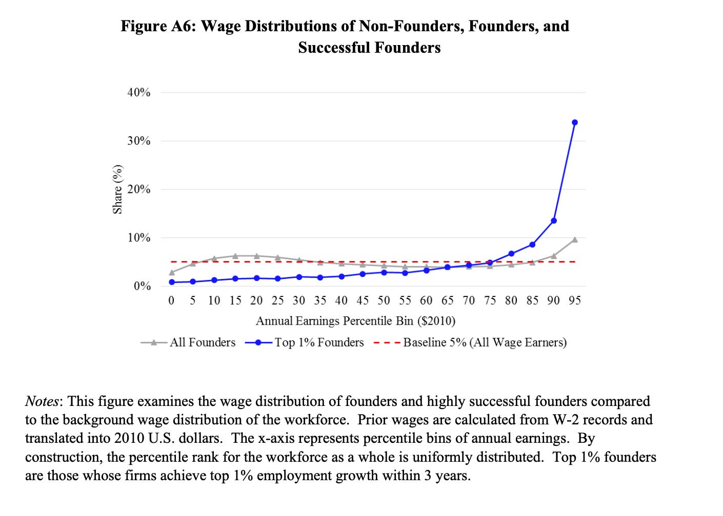 We see that Top 1% founders are HIGHLY more likely to have been in the top 5-20% of earnings prior to their founding the company. This provides a bit of a double-edged sword here. On the one hand, the very people we’re targeting, especially those currently implanted within the Apple et al top-of-the-Nasdaq ecosystem, are highly likely to have significant net worth from which to pull4. On the other, our personal lifestyles tend to scale linearly-ish with our earnings, which of course means that grants for this cohort are inevitably more expensive than those for youth, even with a significant earnings discount.